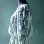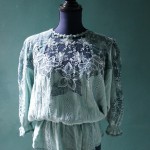 襟ぐりや袖口 裾も 全て違うレーステープでパイピングされた 凝った作りで