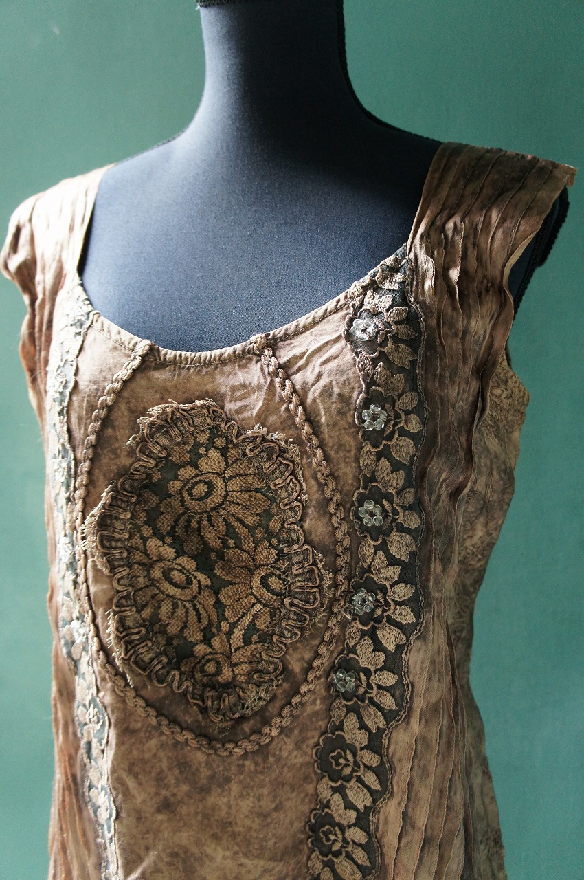 肩紐からのタックが 裾からそのままフリンジとなっているデザインが面白い一着です