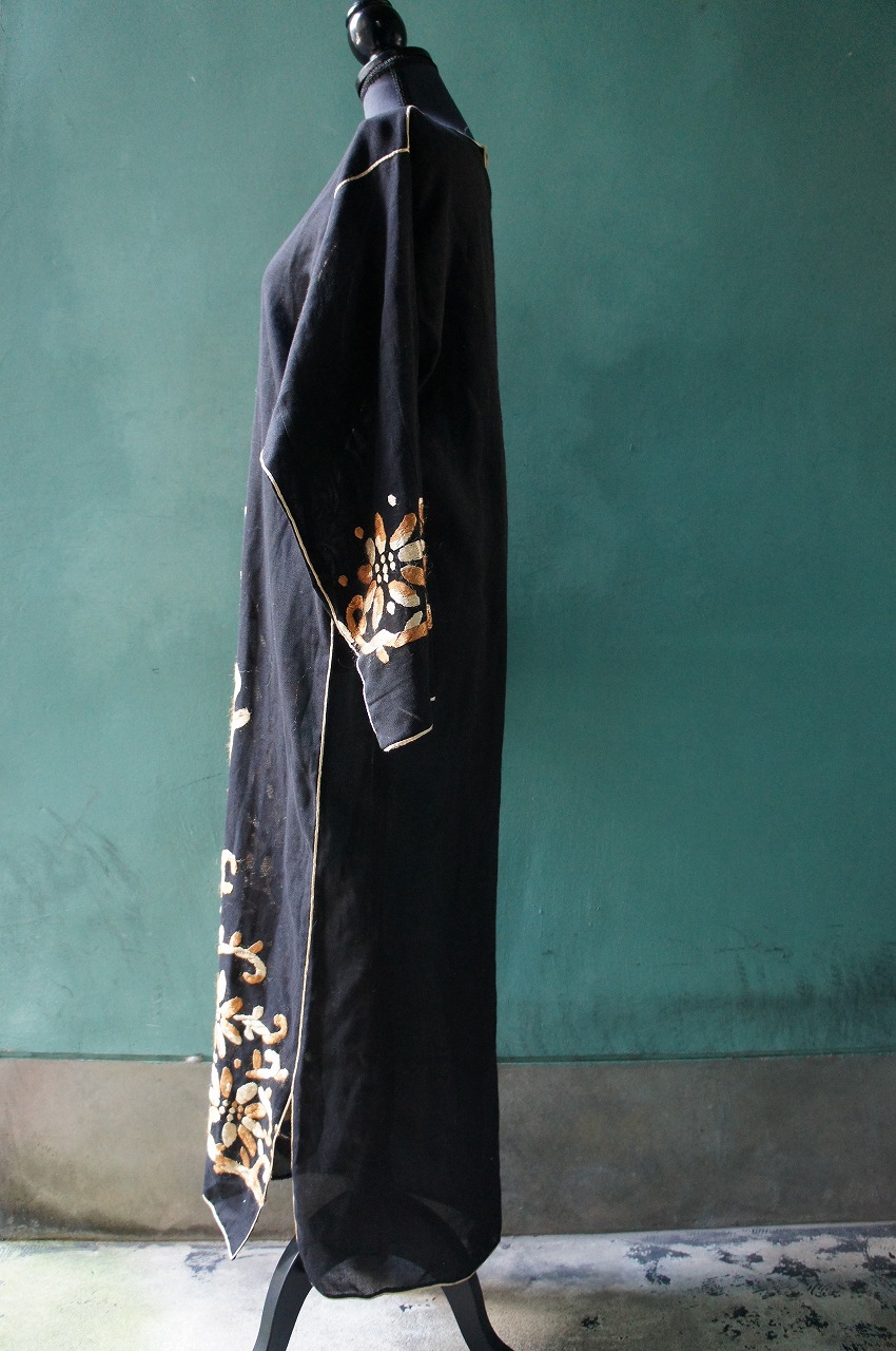 黒ベースに 全面たっぷりの花モチーフの刺繍