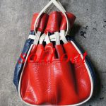 モッドなカラーリングが可愛い オールレザーの巾着型バッグです