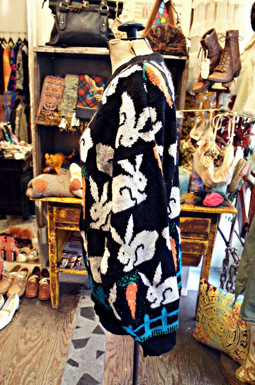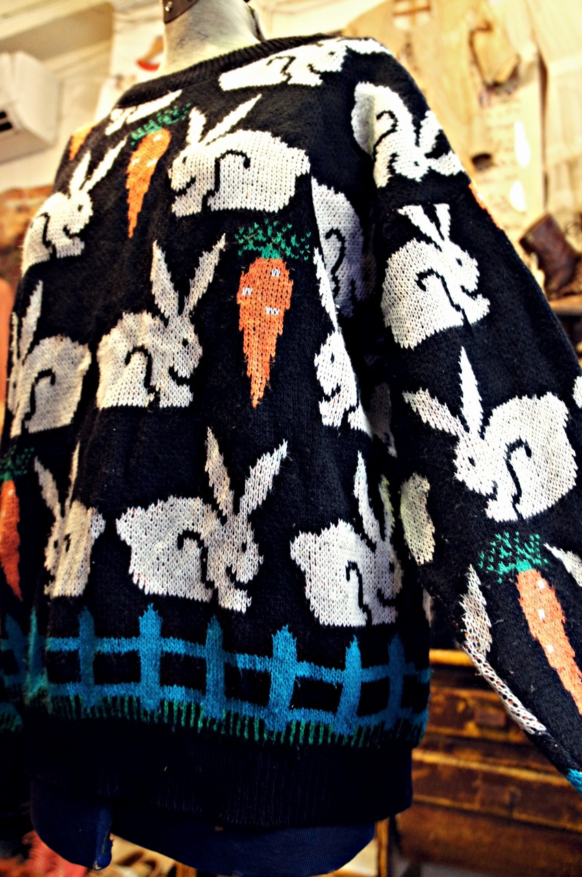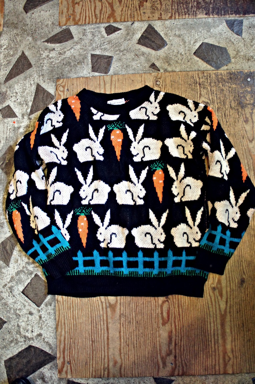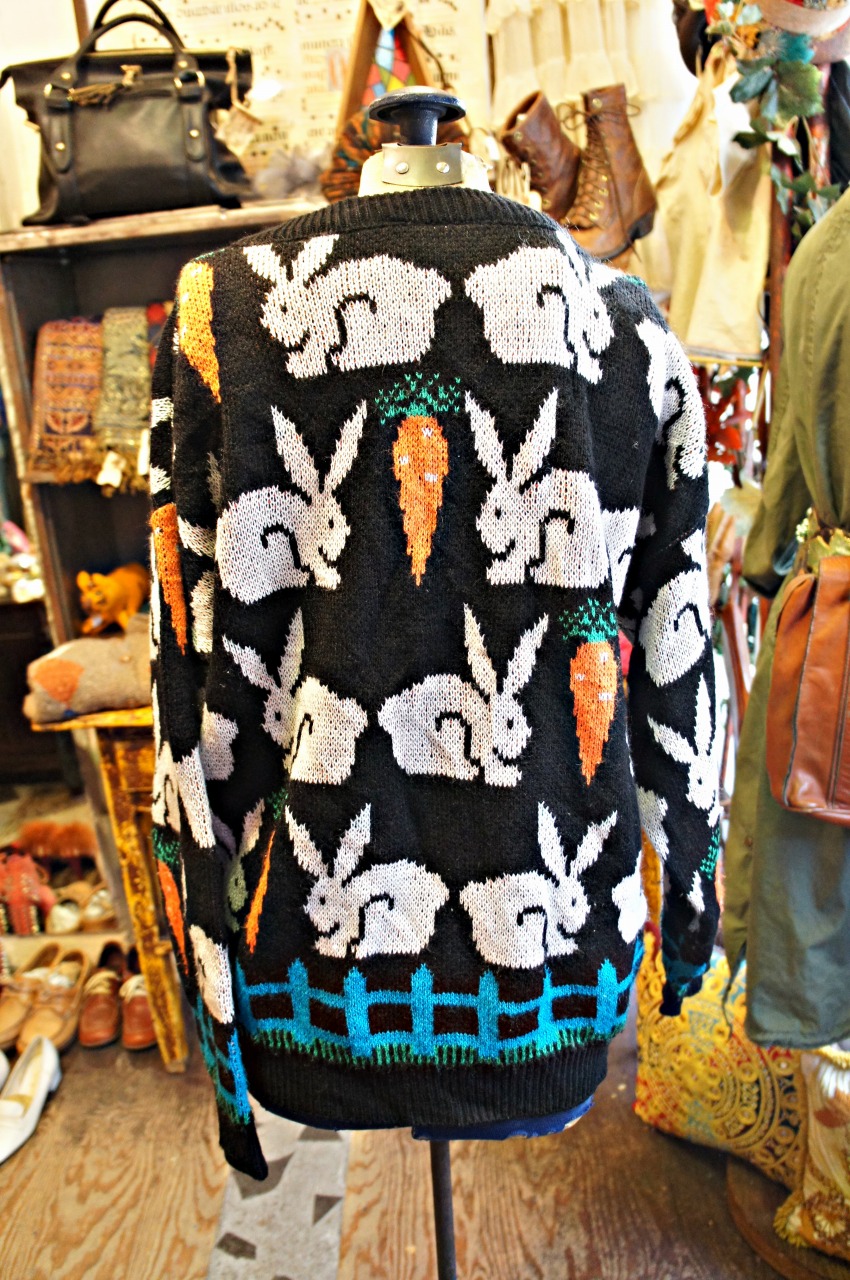 ニンジンを囲むウサギが可愛いUsed ニットトップスです
