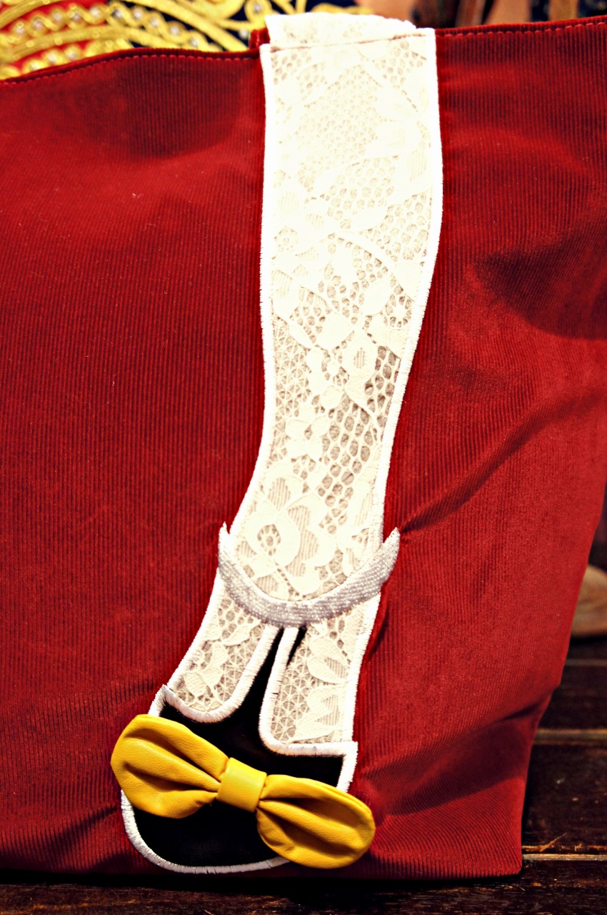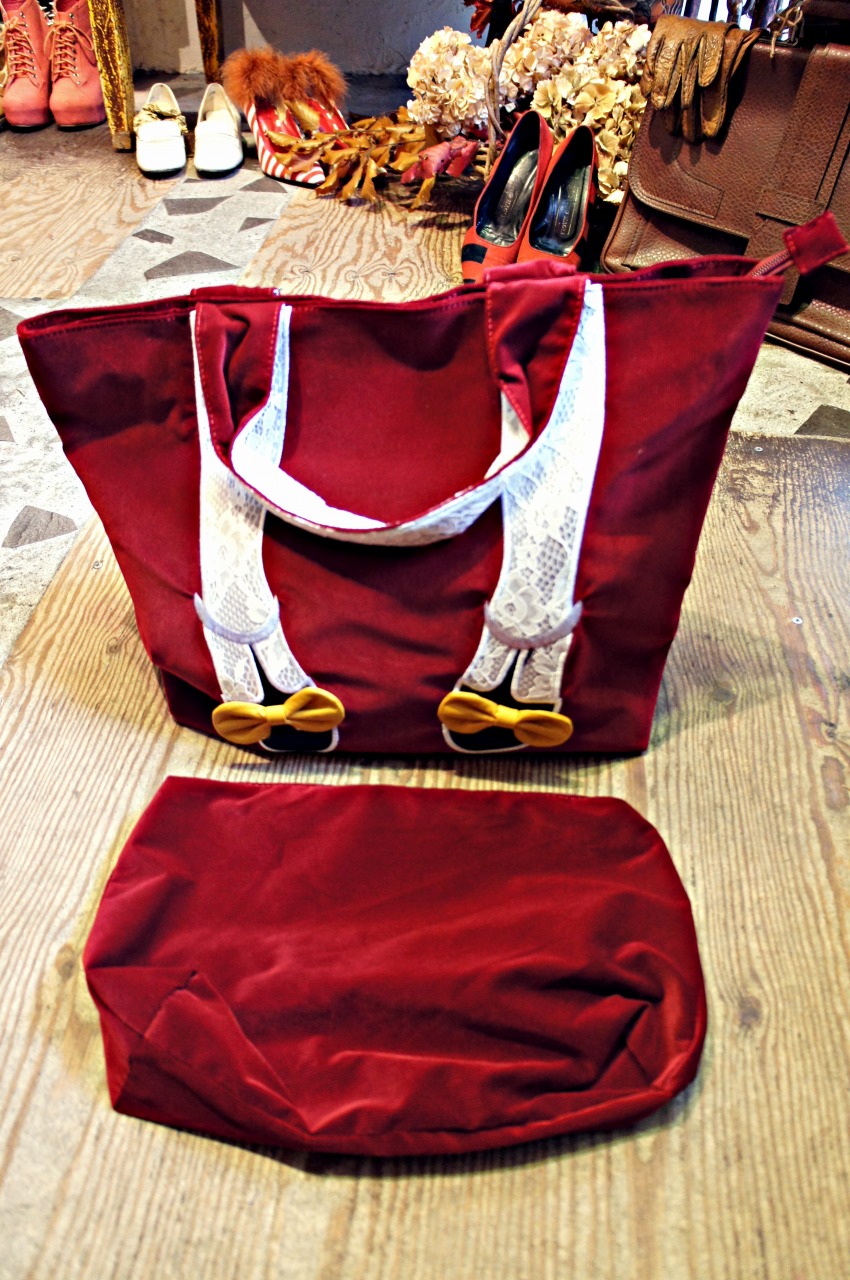 レースのタイツにリボンパンプスをはいた少女のモチーフが可愛いトートバッグです