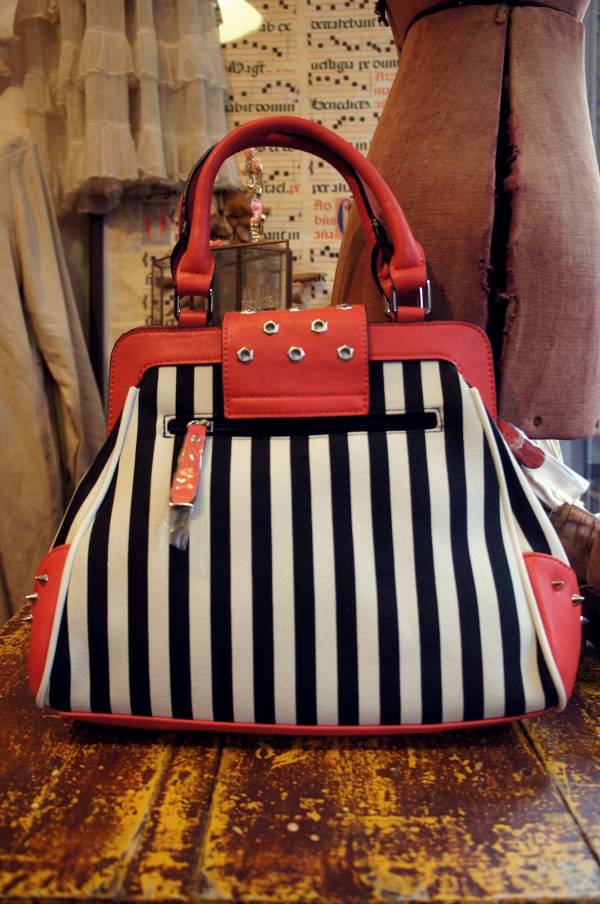 スタイリッシュな太目のストライプに タッセルとスタッズが可愛い LAブランド melie bianco のドクターバッグです