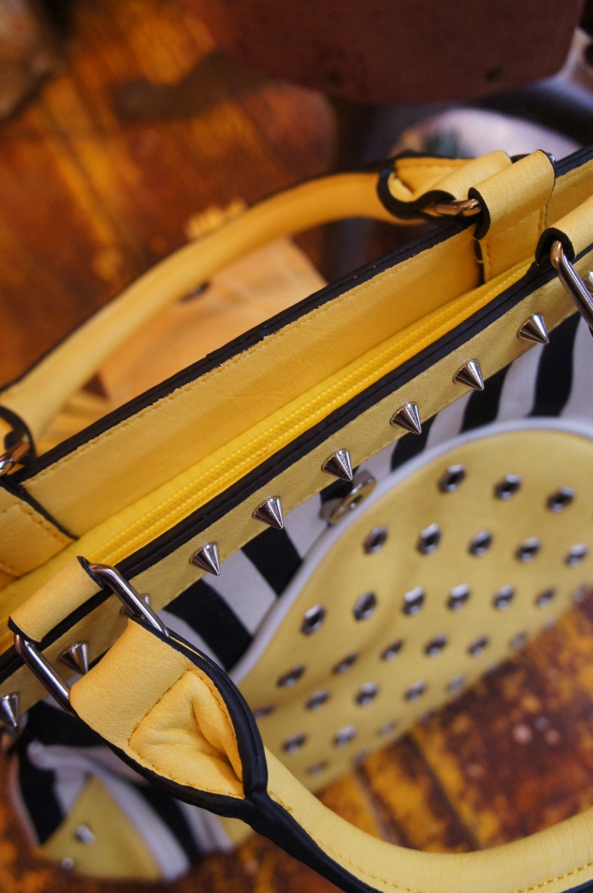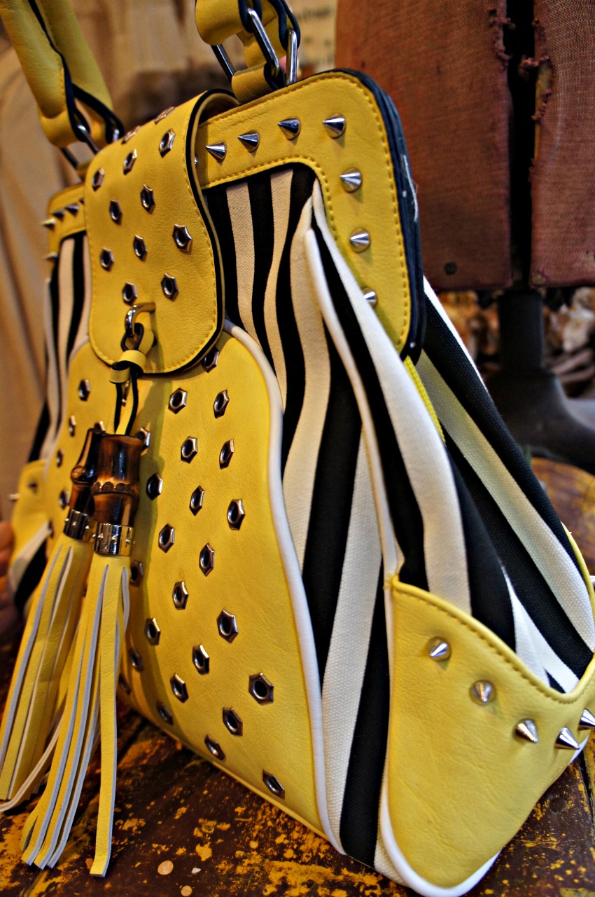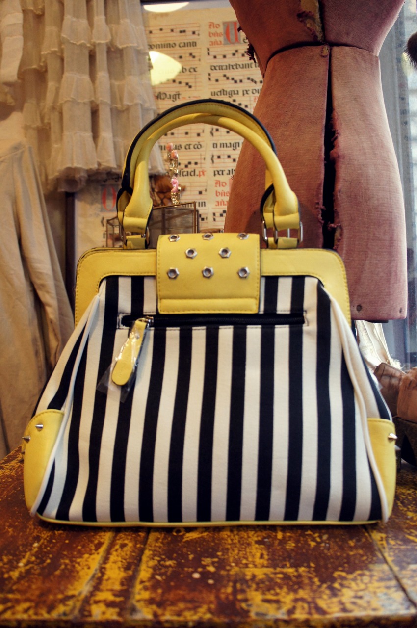 スタイリッシュな太目のストライプに タッセルとスタッズが可愛い LAブランド melie bianco のドクターバッグです