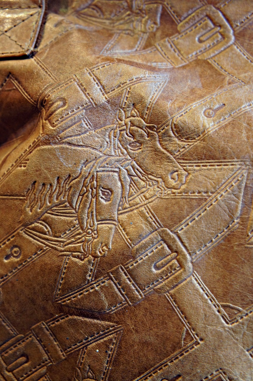 2頭の馬とベルトのデザインが 型押しで全体に施されており、Euroアイテムらしいデザインです