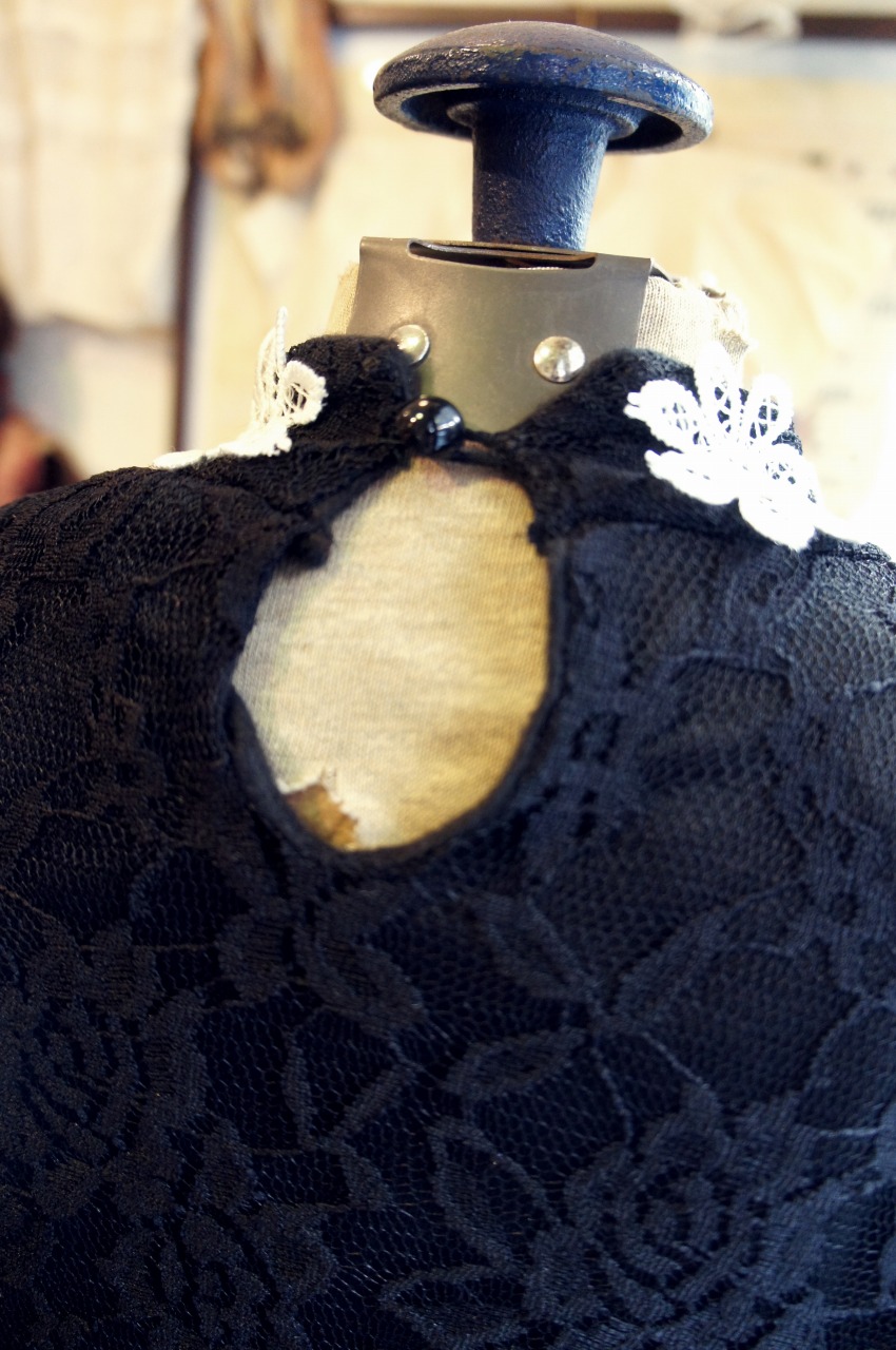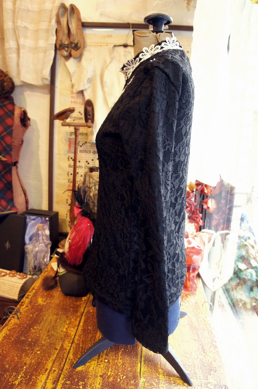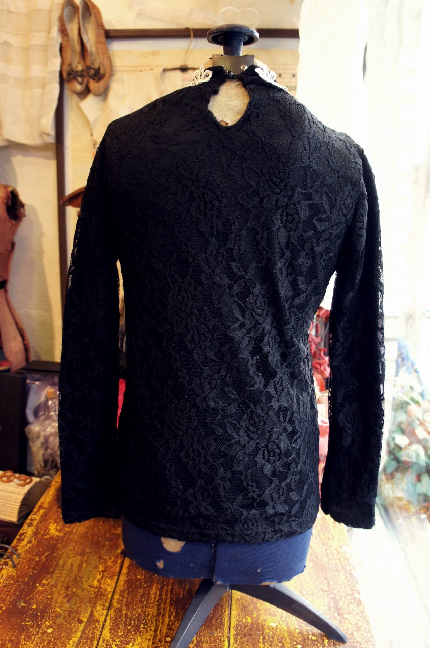 首から胸元部分がレースで透けたデザインがセクシーなレーストップスです