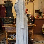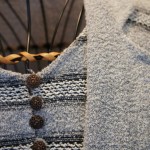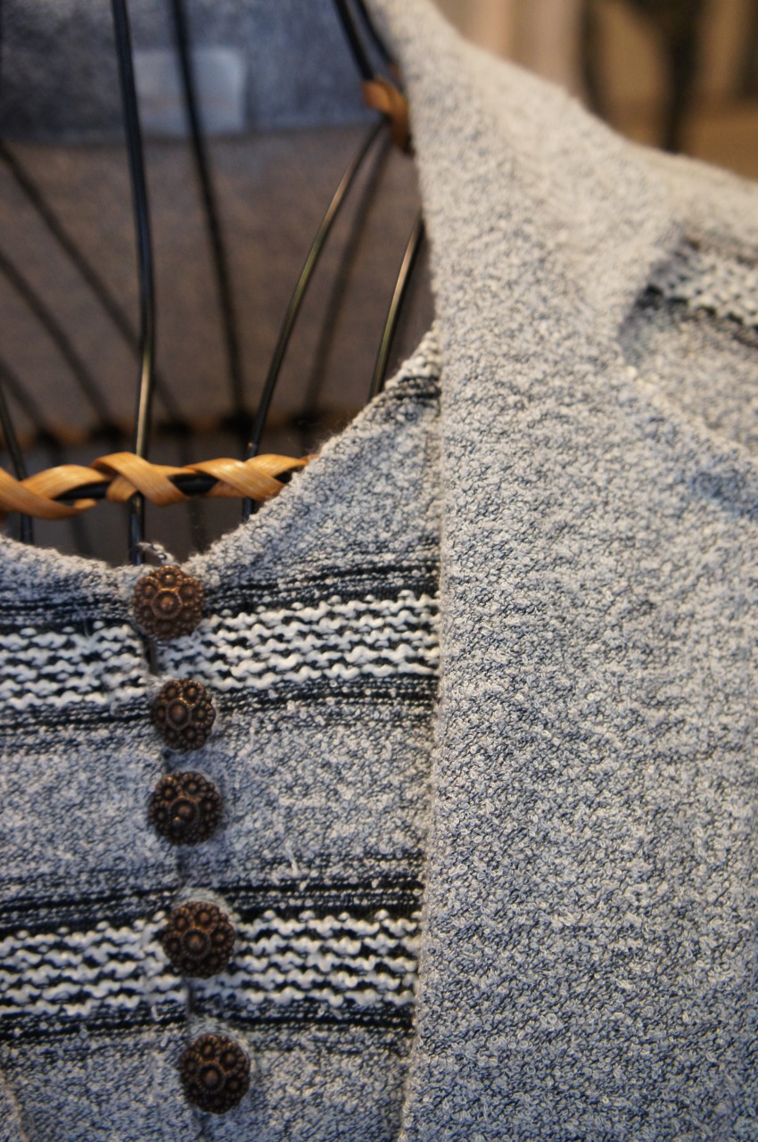 真鍮製のボタンと ウエストにつけられたバックルモチーフのパーツが 柔らかい印象を ぐっと引き締めてくれています